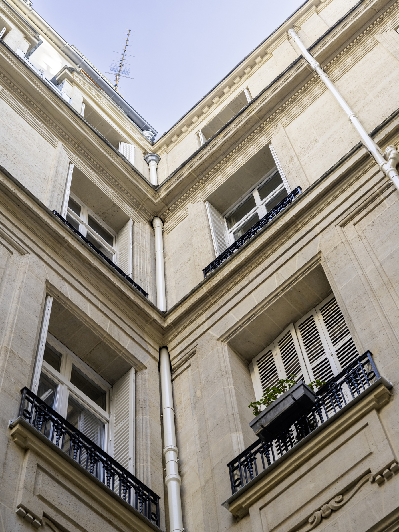 Paris / 08 Boulevard Haussmann Ravalement des façades cour Maître d’ouvrage Copropriété Année de réalisation 2024 Catégories Ravalement Photographies : Victor Grandgeorges