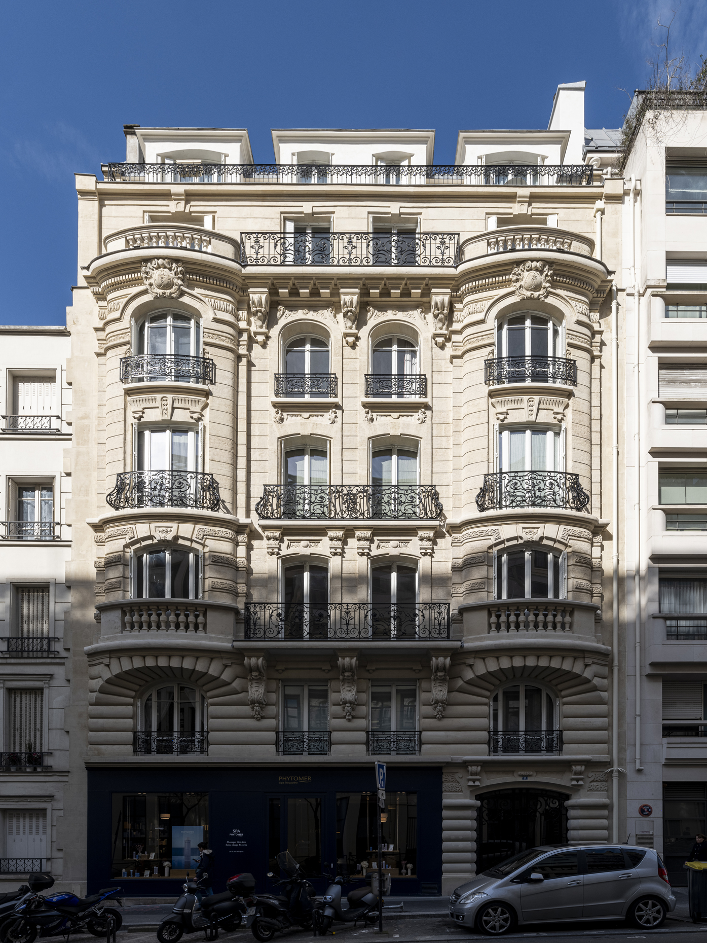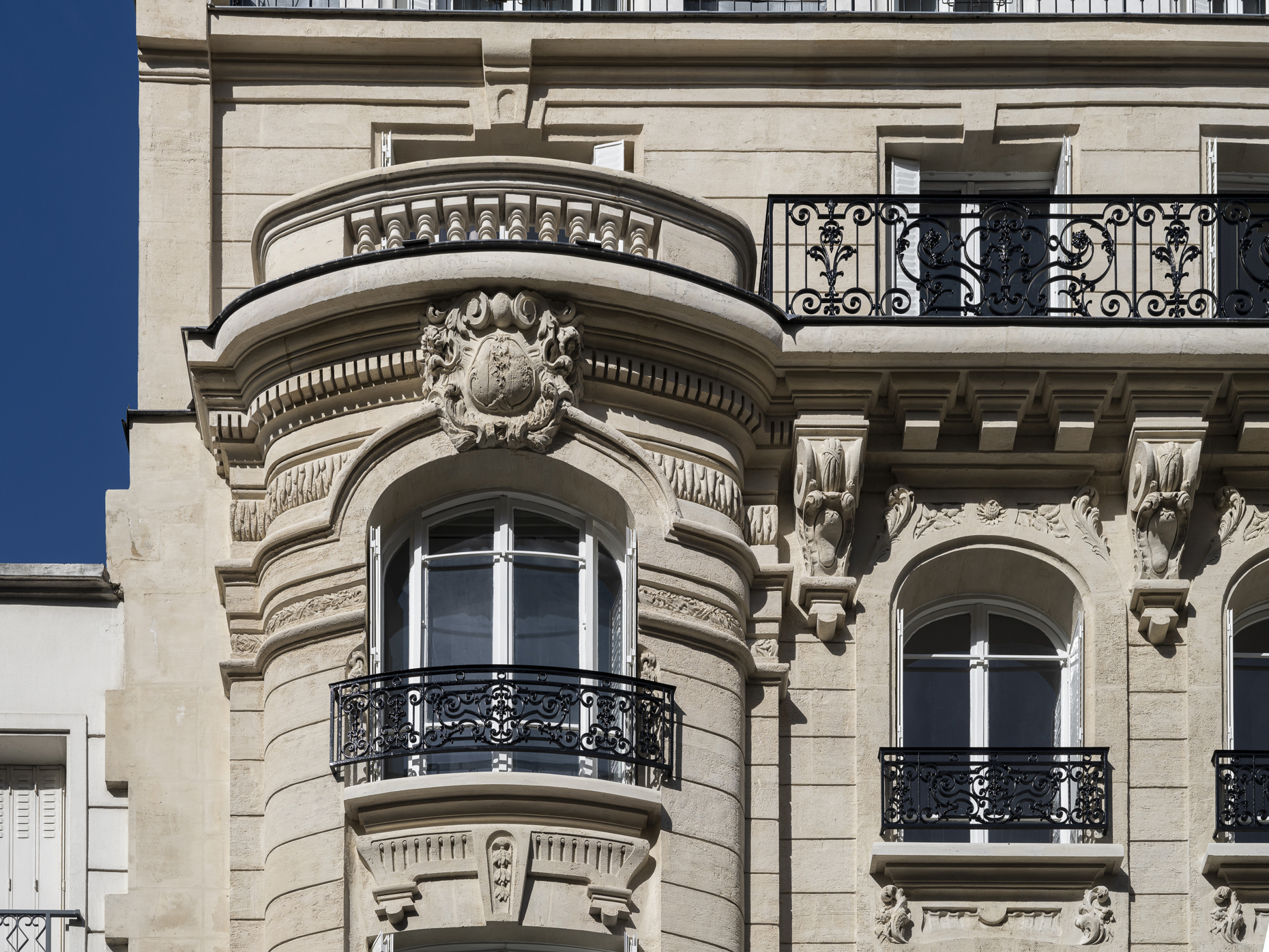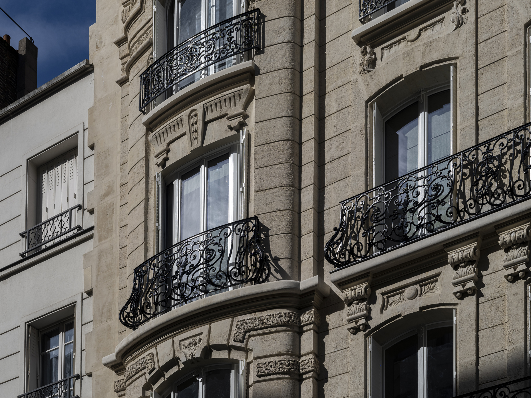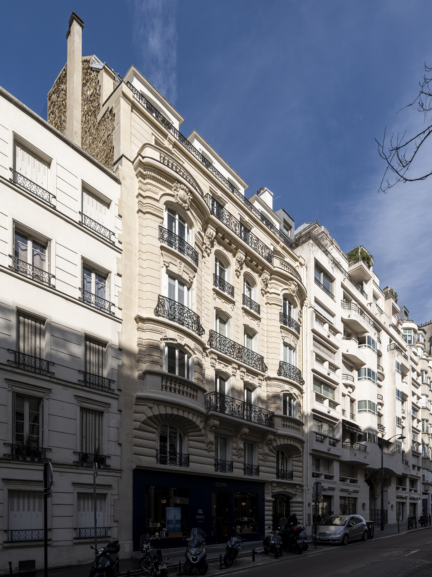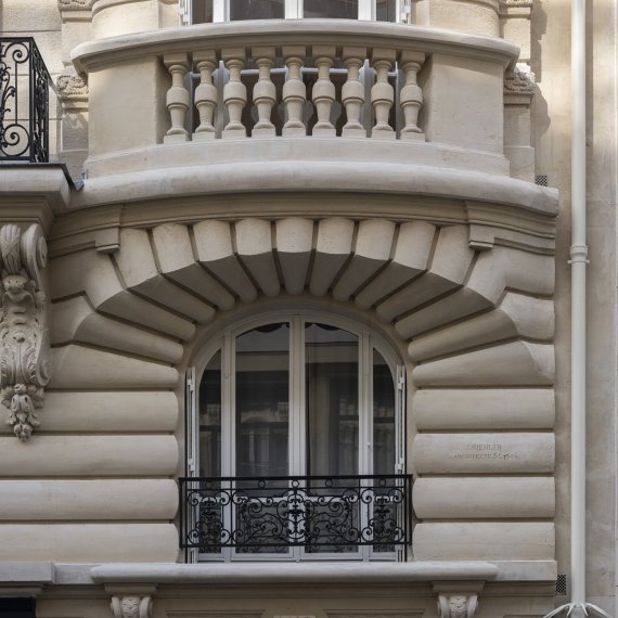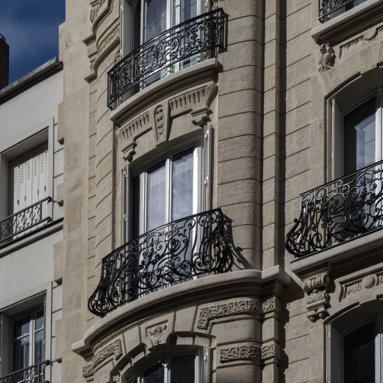 Paris / 16 Rue Benjamin Franklin Ravalement d’une façade pierre Maître d’ouvrage Copropriété Année de réalisation 2024 Catégories Ravalement Photographies : Victor Grandgeorges