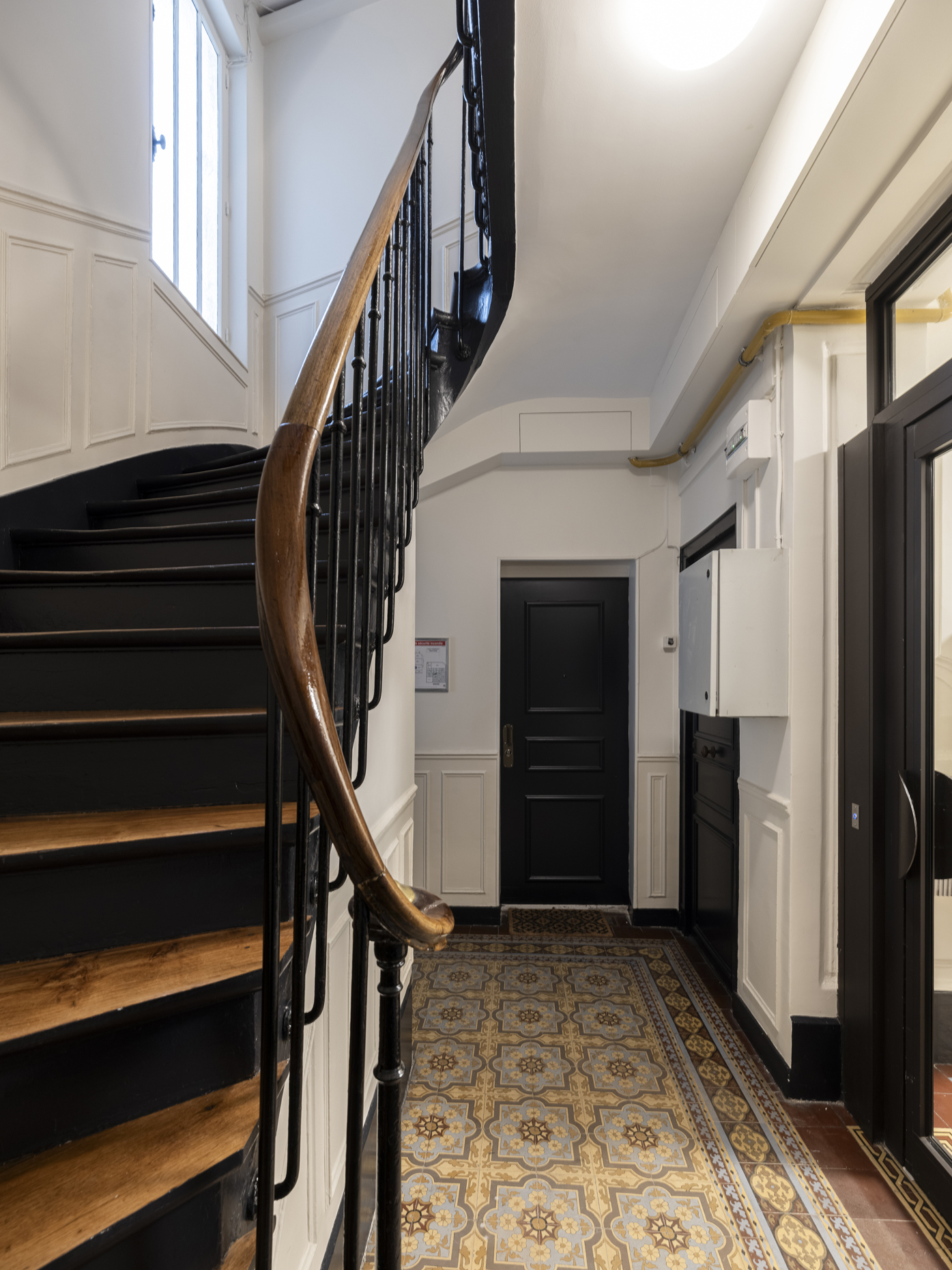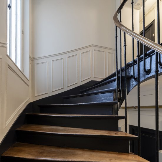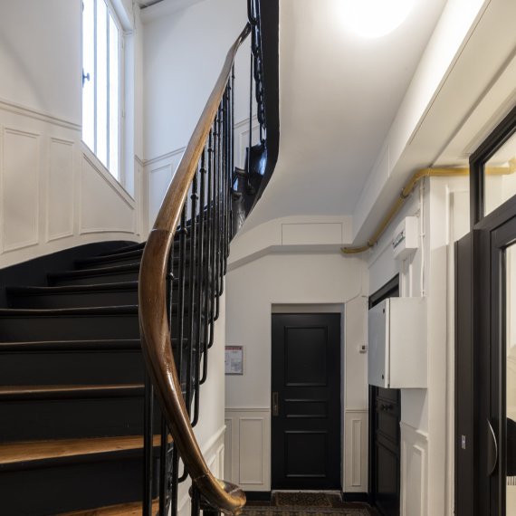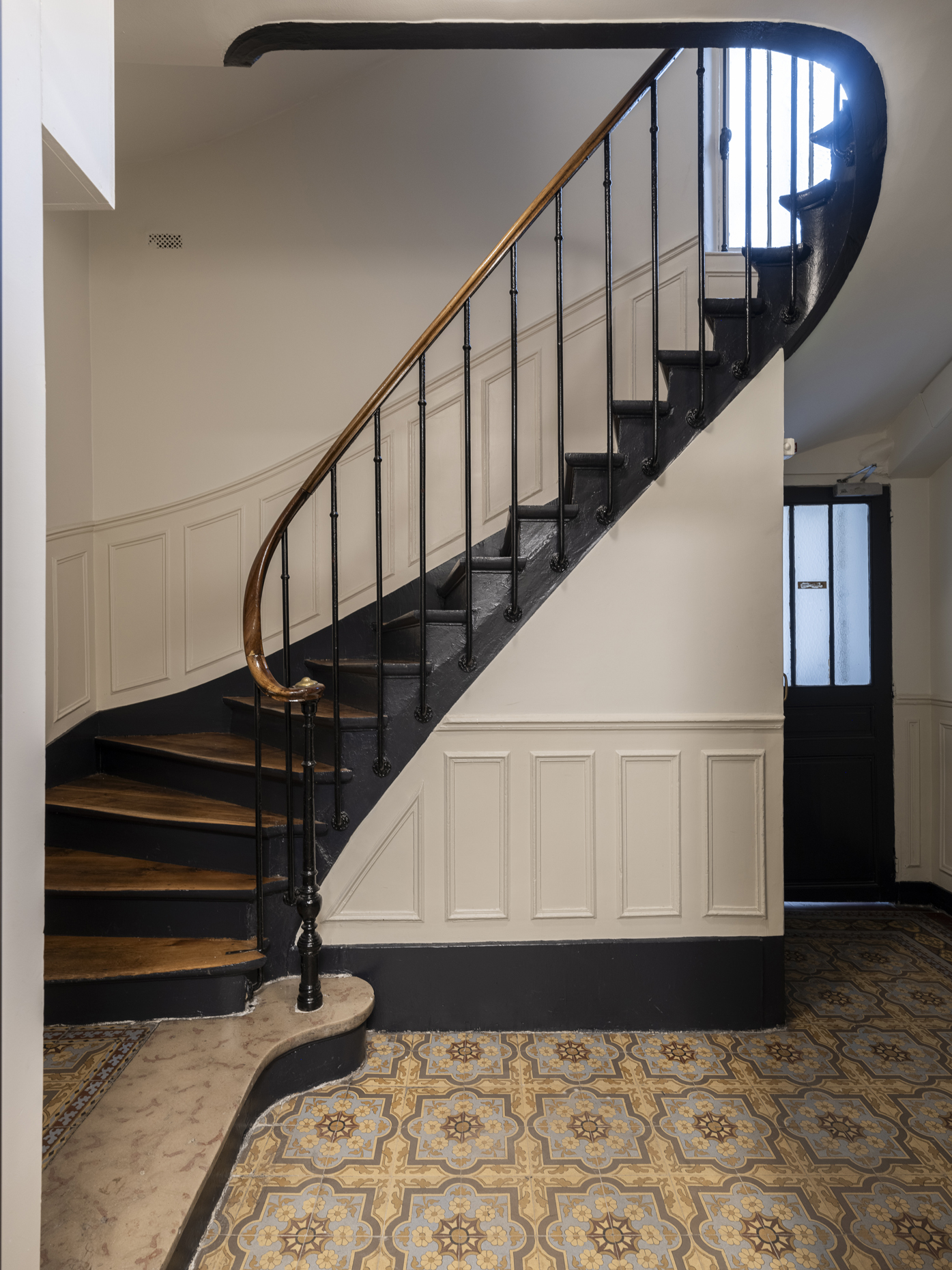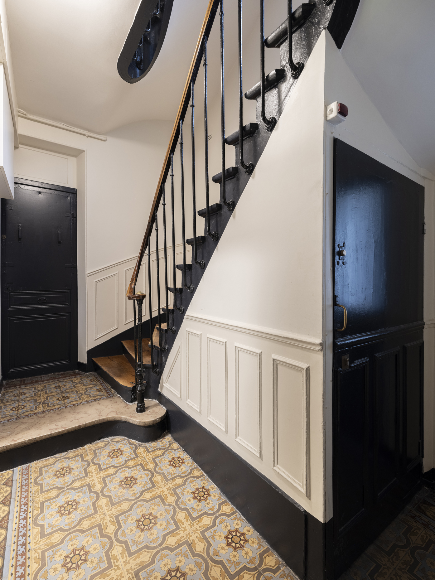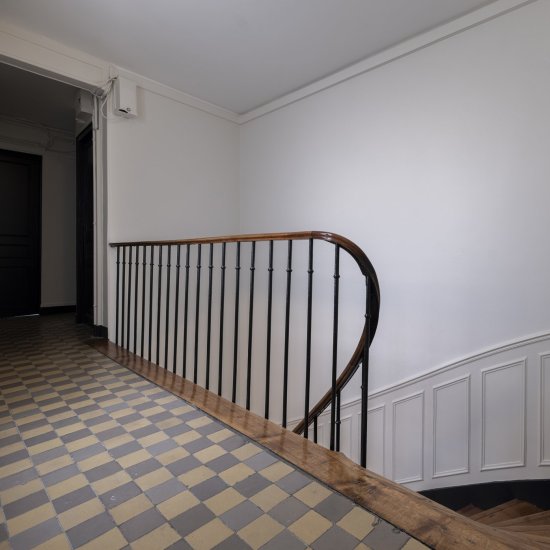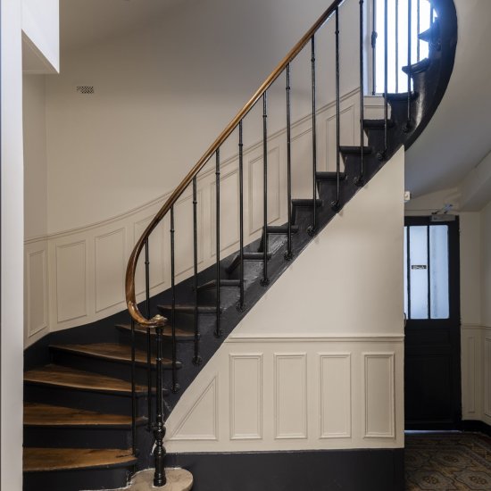 Paris / 18 Rue Versigny Réfection du hall et de la cage d’escaliers Maître d’ouvrage Copropriété Année de réalisation 2023 Catégories Cage d’escalier Photographies : Victor Grandgeorges