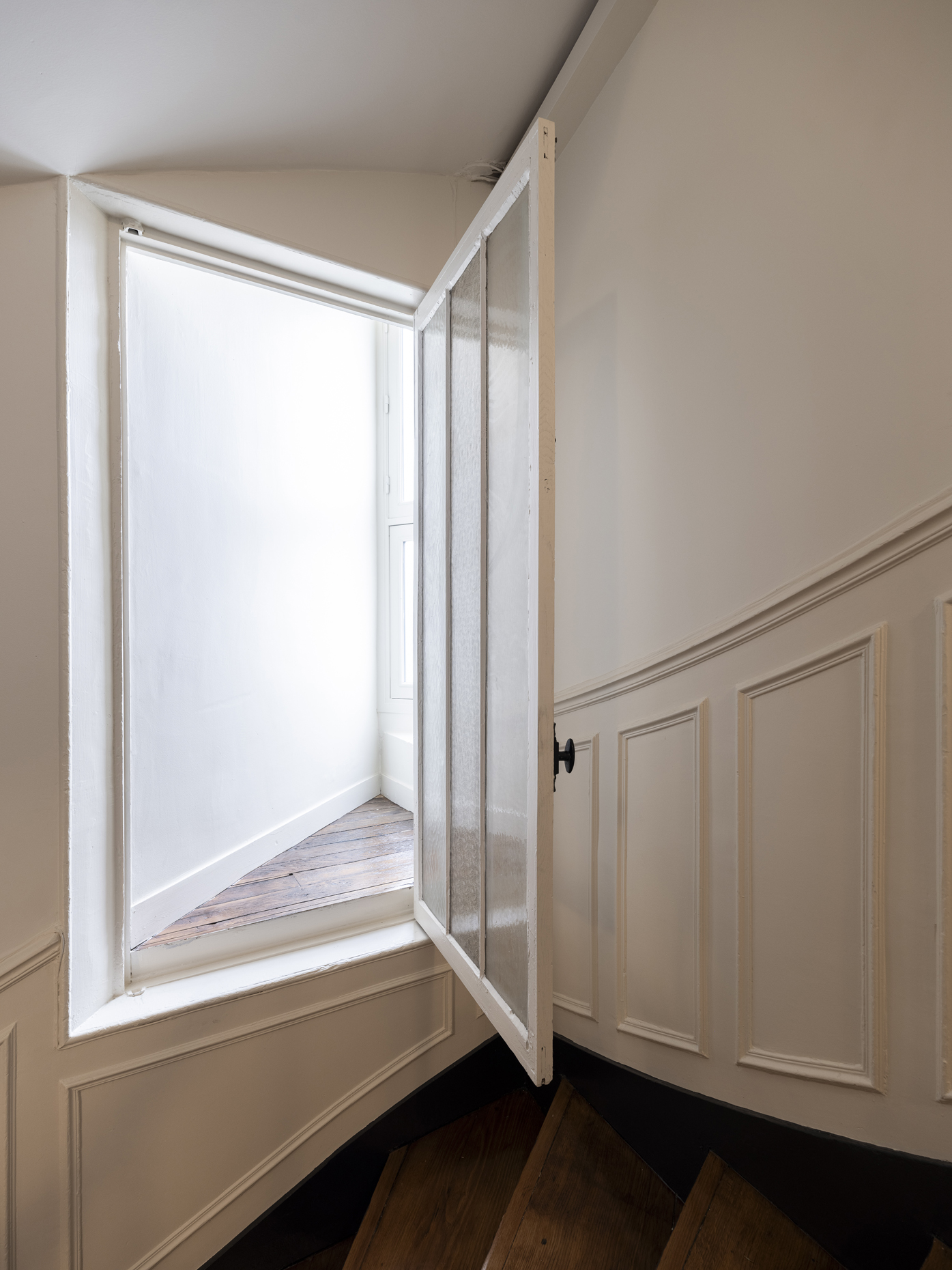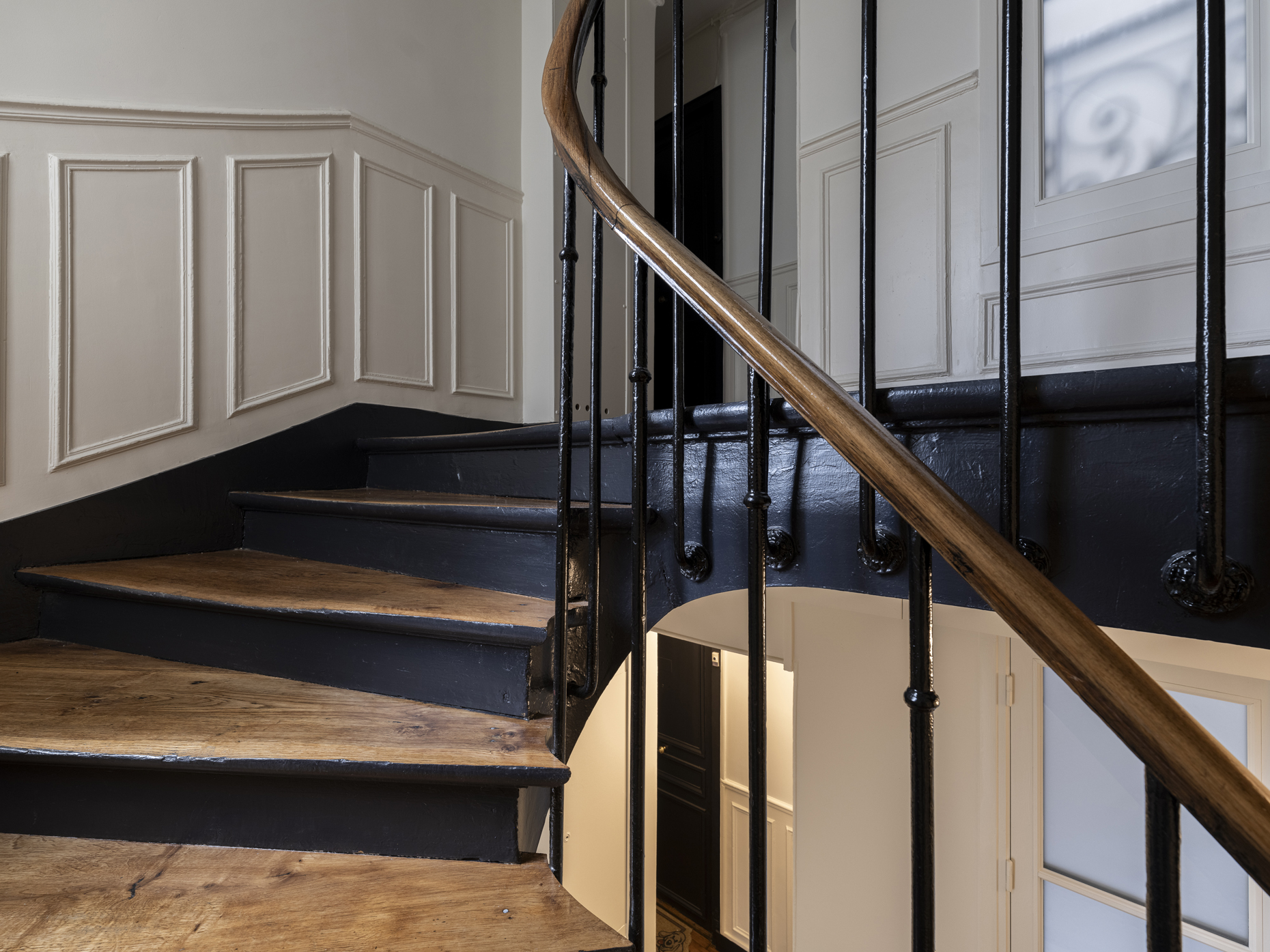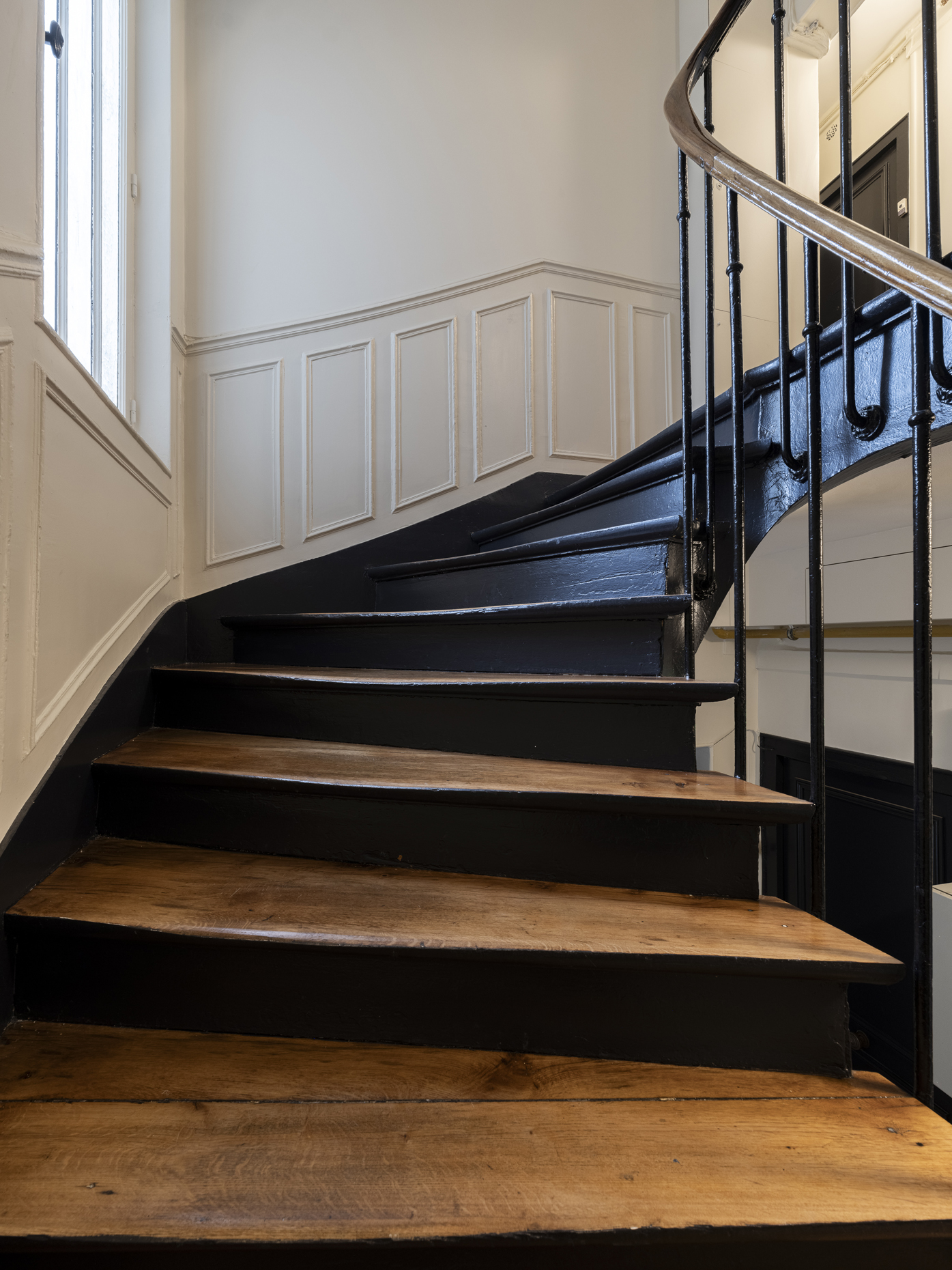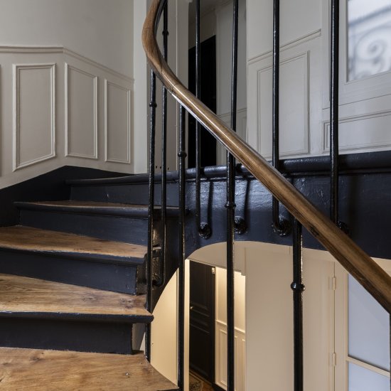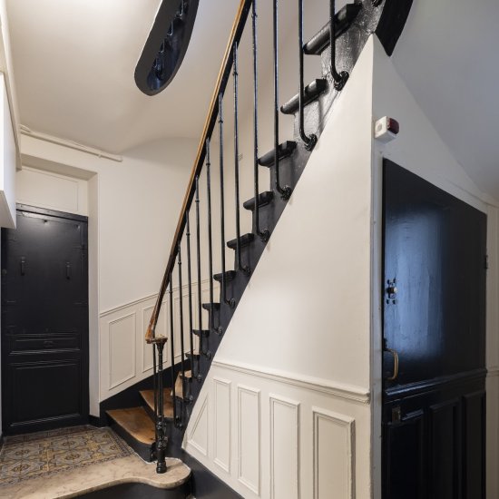 Paris / 18 Rue Versigny Réfection du hall et de la cage d’escaliers Maître d’ouvrage Copropriété Année de réalisation 2023 Catégories Cage d’escalier Photographies : Victor Grandgeorges