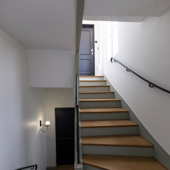 Paris / 03 Rue Villehardouin Réfection du hall et de la cage d’escaliers Maître d’ouvrage Copropriété Année de réalisation 2022 Catégories Cage d’escalier Photographies : Victor Grandgeorges